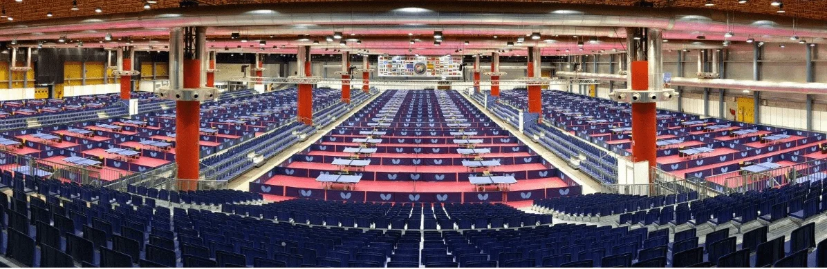 Quando finalmente si arriva alla “palestra” (un’enorme padiglione quadrato, grande come due campi di calcio), lo spettacolo dei 165 tavoli ben ordinati e delimitati con ampi spazi di gioco, con piccole tribune che consentono agli spettatori di godersi da vicino ogni partita, fa venire la pelle d’oca (vedi foto).